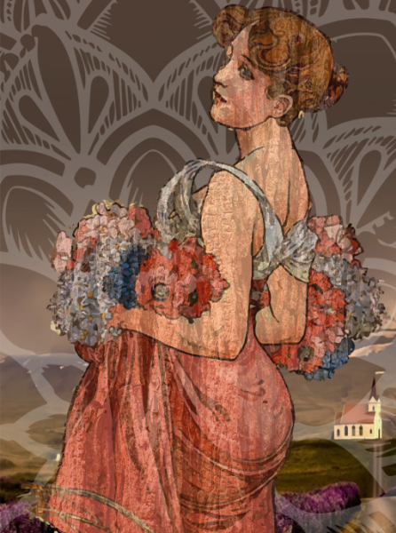 českým malířem Alfonsem Muchou, obdobím secese a art nouveau.